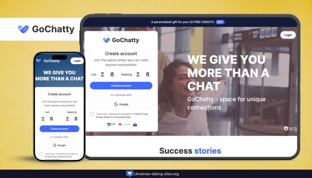 GoChatty is a decent place to meet Ukrainian singles, as there are many women from Eastern Europe signed up for it. This site was founded just 2 years ago, but it already has around 237K monthly visits. Members of GoChatty are very active, and there are a variety of chat ways, from traditional texting to video messaging. And the reply rate is on point, around 93%, which makes GoChatty worth your time. But mind that you need GoCoins to use some services that start at $16.99 for 20 GoCoins.